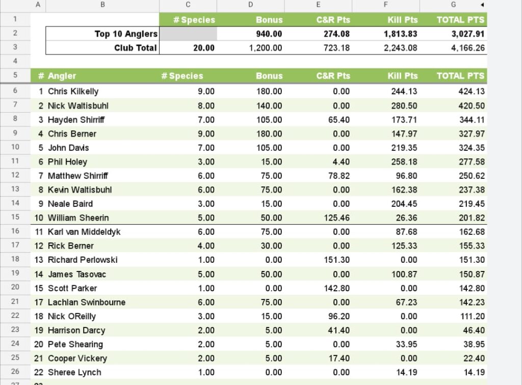 We would also like to take this opportunity to congratulate the top 10 anglers from each club. Your skills, dedication, and hard work paid off, and we are delighted to see your success.